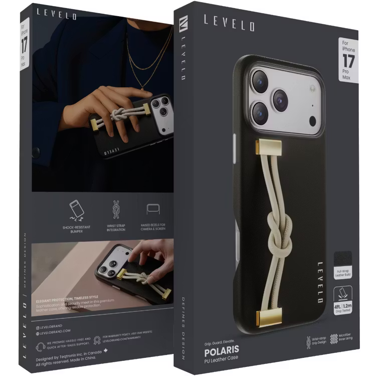 The Polaris case offers reliable drop protection through its durable hybrid structure, while the soft leather texture provides a refined, professional feel. The integrated wrist strap helps prevent accidental drops and adds a stylish functional element—perfect for commuting, traveling, or capturing content.